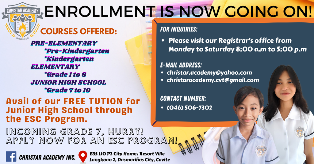 CHRISTAR ACADEMY commits itself to put Christ as the center of everything that will lead students to become values-oriented individuals; to enhance quality education through a standard-based K-12 curriculum that will equip the students with 21st-century skills and become competent individuals.